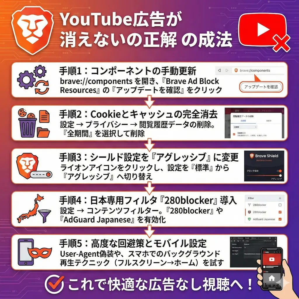 BraveでYouTube広告が消えない!今すぐ試すべき5つの修復手順