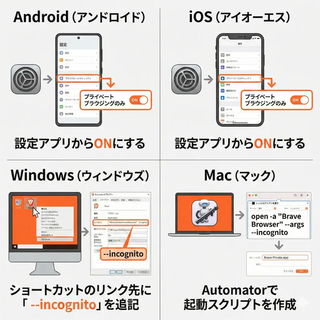 Android・iOSで『Brave』を常にプライベートモードにする全設定