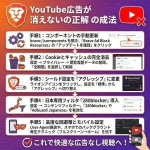 設定や不具合の解決には少しの知識が必要ですが、この記事で紹介した手順を実行すれば、誰でもその恩恵を受けられます。YouTubeの広告に悩まされているなら、今すぐBraveブラウザの設定を見直してみてください。
