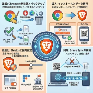 Braveブラウザを導入することで、快適で安全なインターネット環境が手に入ります。インストールからデータ移行まで、本記事で紹介した手順を進めれば迷うことはありません。