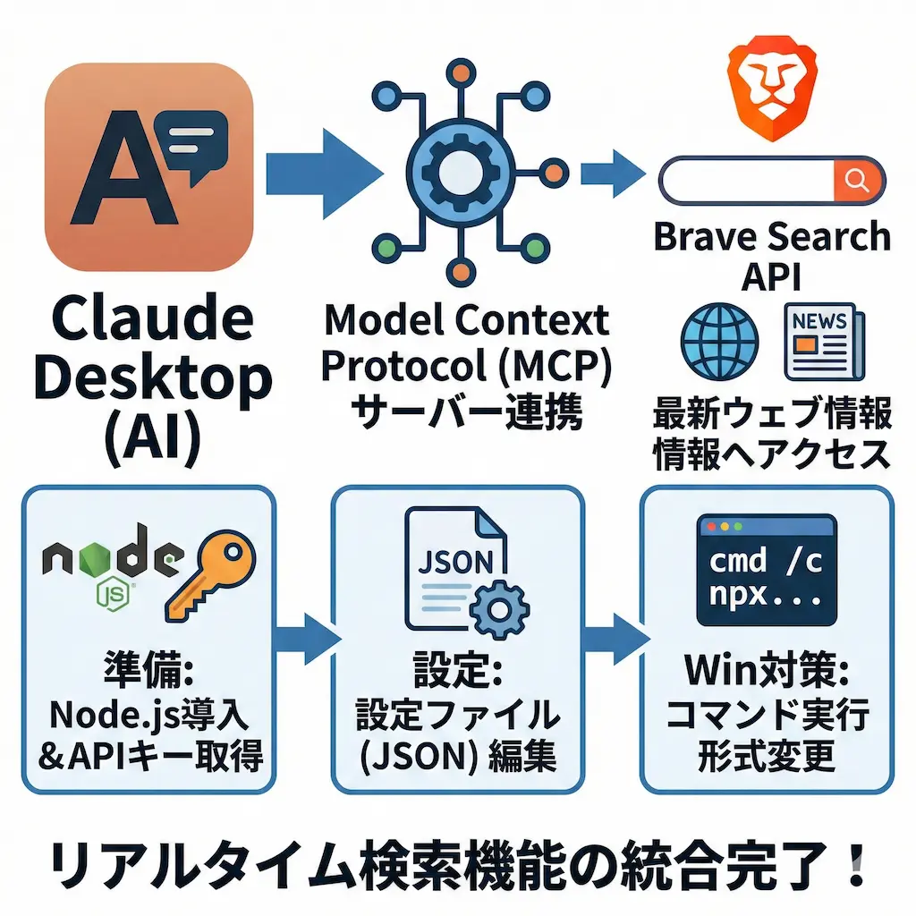 私はAIの能力を最大限に引き出すため、外部検索機能の追加を推奨します。最新の情報をAIが直接取得できる環境を整えると、生成される回答の質が劇的に向上します。 Model Context Protocol(MCP)を利用すれば、ClaudeにBrave Searchの検索能力を統合でき...